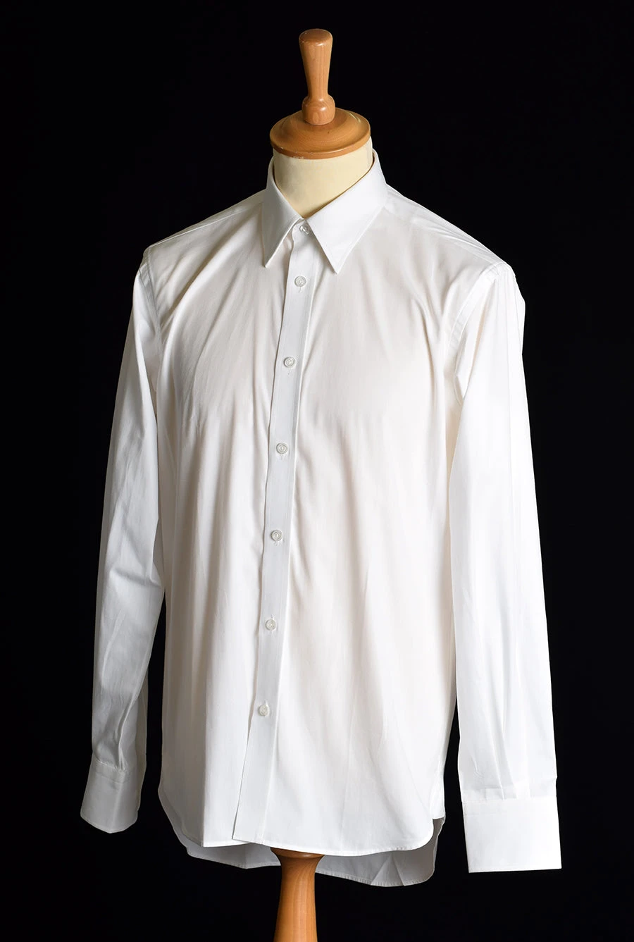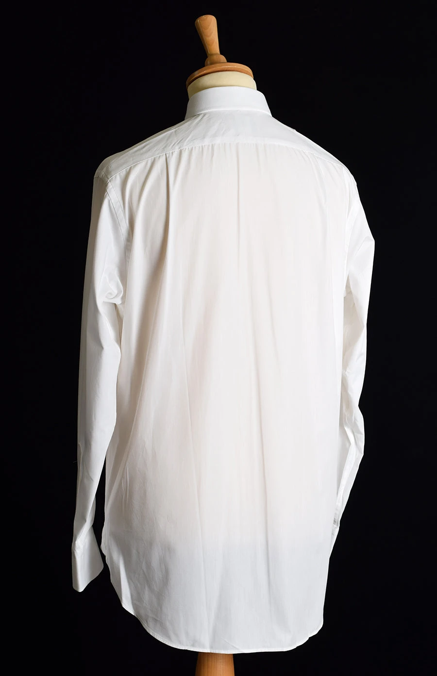 It’s taken some persuading but we’ve finally decided to move with the times and produce a 1950’s/60’s shirt. The body is less voluminous than our early C20th shirts but keeps well away from anything as drastic as a slim fit. Fusing has been used in the collar and cuffs which is a radical innovation, not just for us, but for the shirtmakers of mid C20th as well.