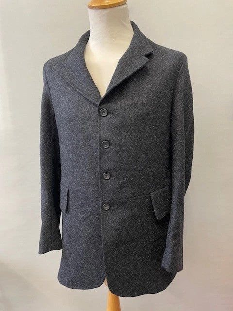This is a direct copy of an original Victorian Coachman’s coat. It has a waist seam with functioning external pockets and inside we have retained the very large lower pockets along with a top jetted one.