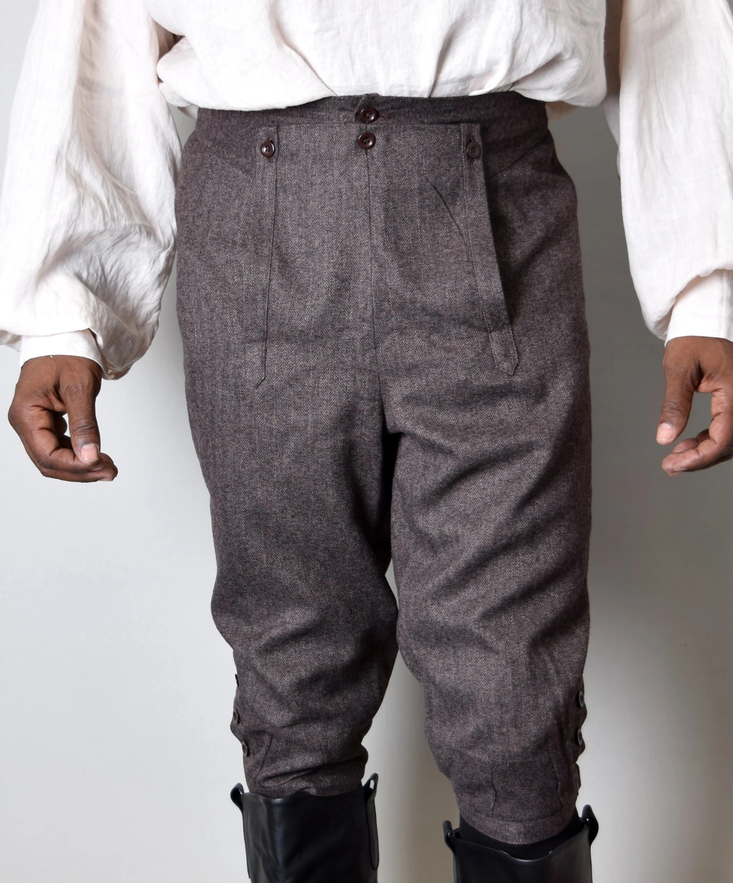 They have the button drop fall front opening and working knee fastenings. Perfect for late C18th through to early C19th.