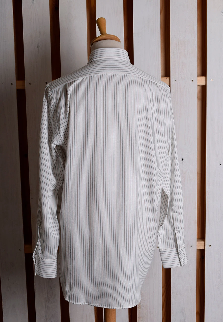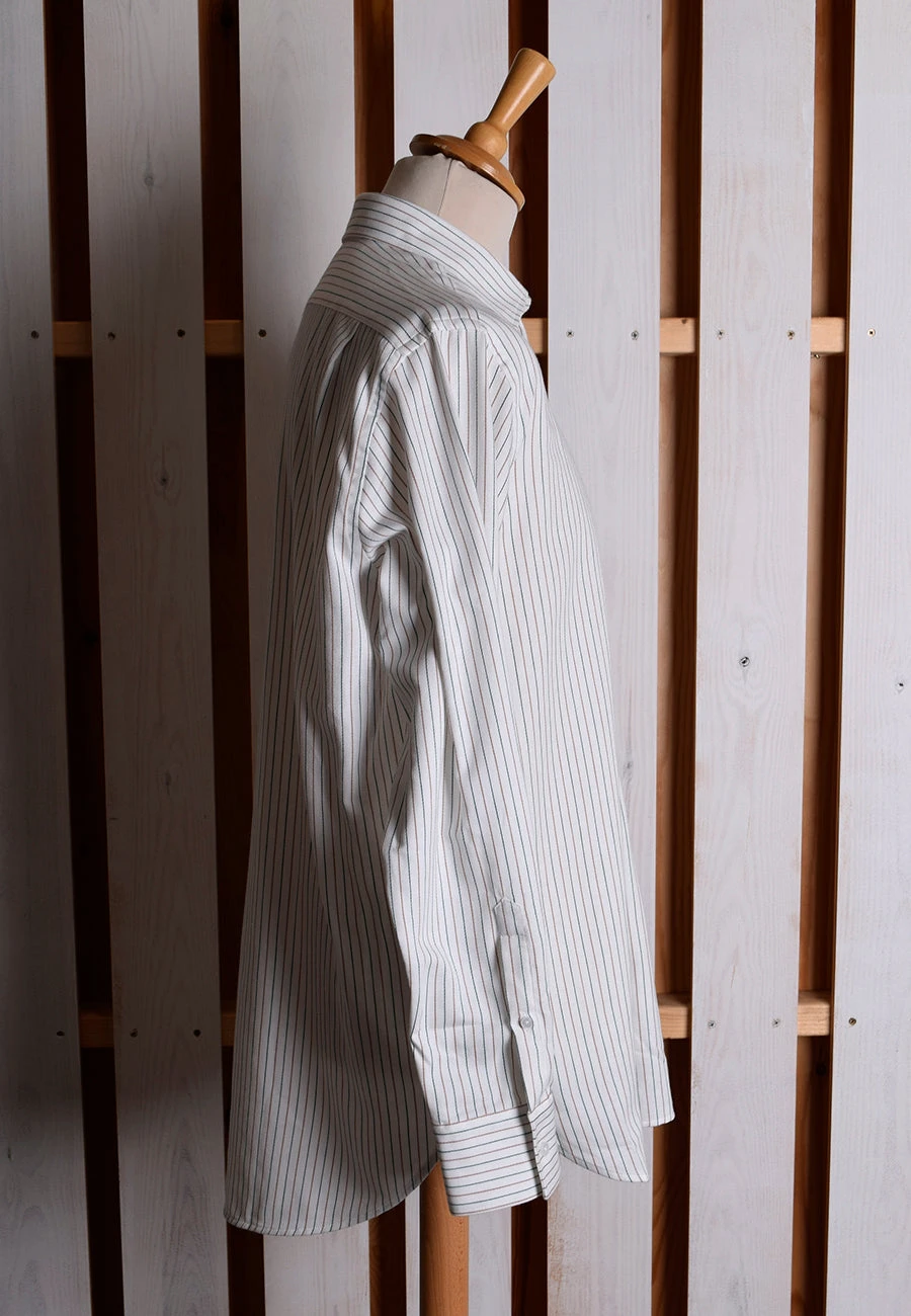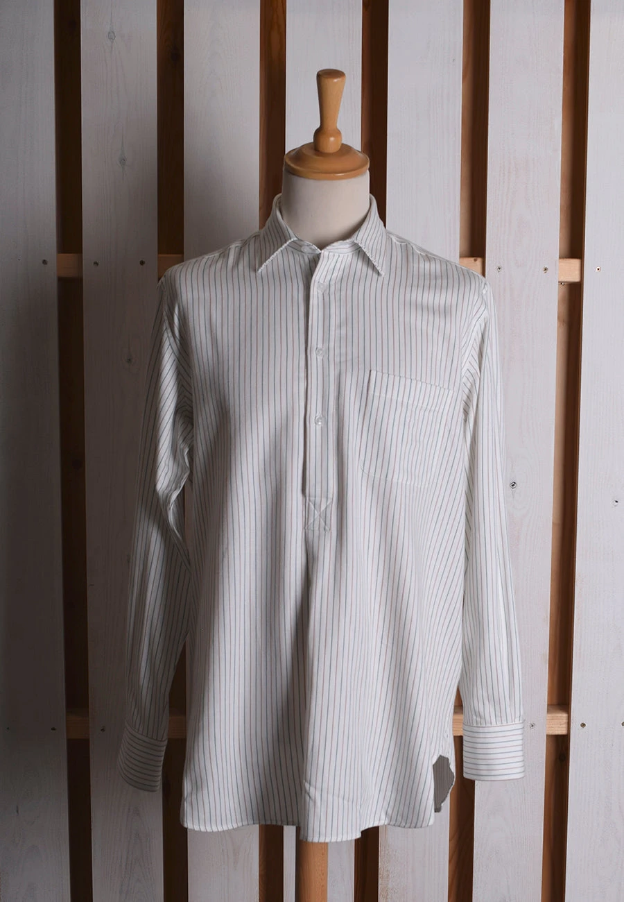 We are delighted to be able to introduce a newly woven variation of our traditional workshirt. This fabric is 100% cotton and taken directly from an original piece from early C20th. It is a sateen weave so very much stronger than our brushed cotton versions although just as soft in handle.