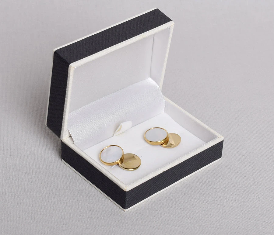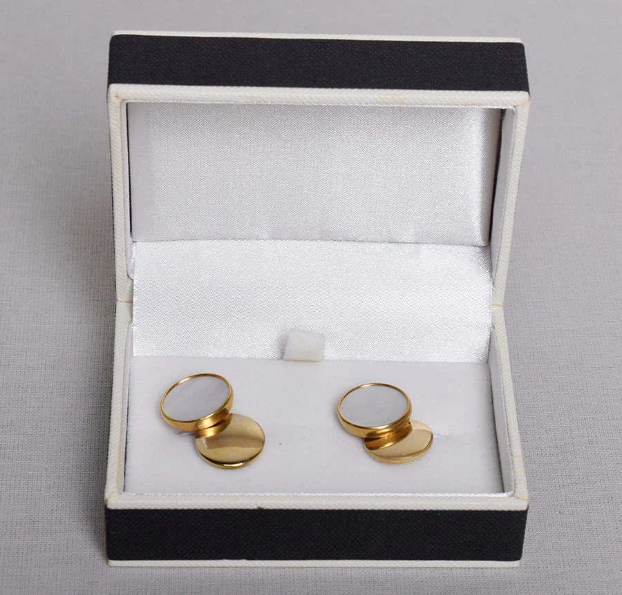 These are genuine vintage cuff links which date from the early C20th and are all marked Made in England except the gilt/mother of pearl.