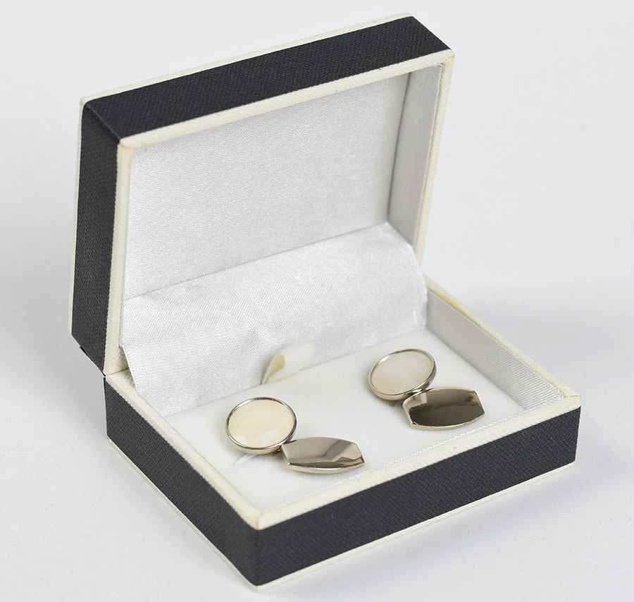 The chain link is a distinctive feature of all cuff links made before 1950.