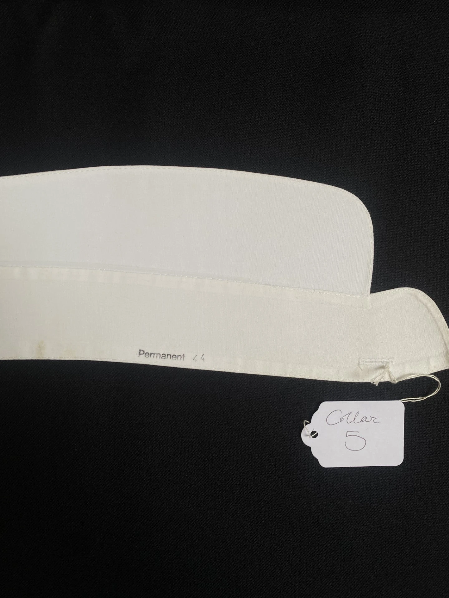 This collar has discoloured marks on the collar and collar stand.
