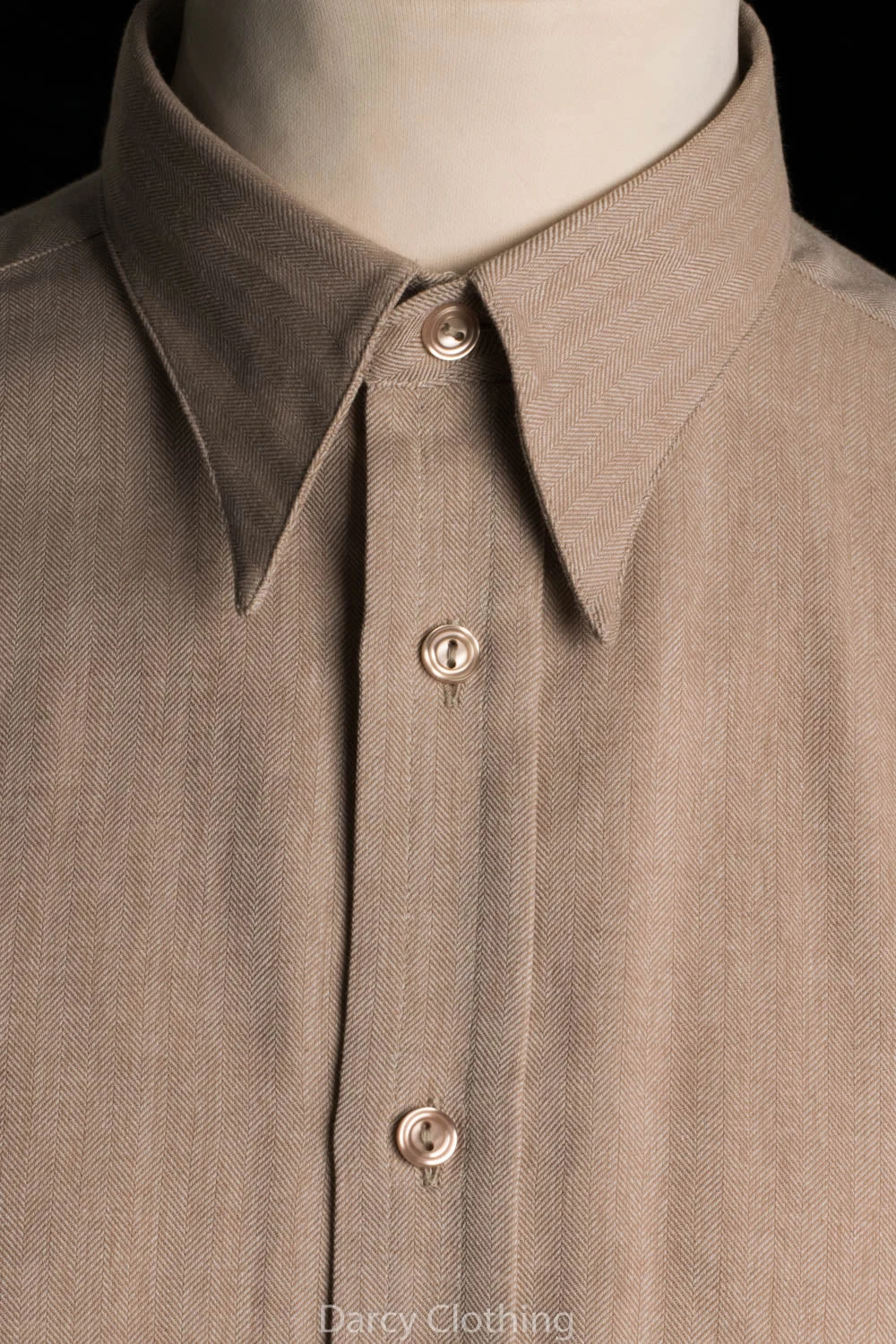These shirts are exactly the same as our other collar attached spearpoint shirts but are made up in a textured herringbone weave. This makes them less formal than our other poplin spearpoints.