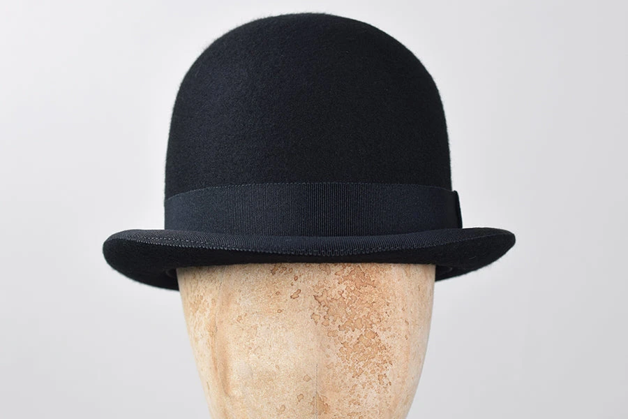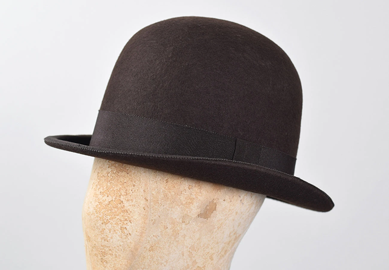 High bowlers were an essential part of late Victorian, early Edwardian street wear. This silhouette is particularly evocative of the period having a distinctively high rounded crown and narrow curled brim.