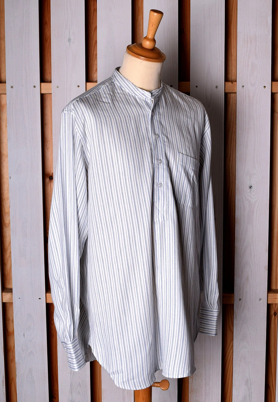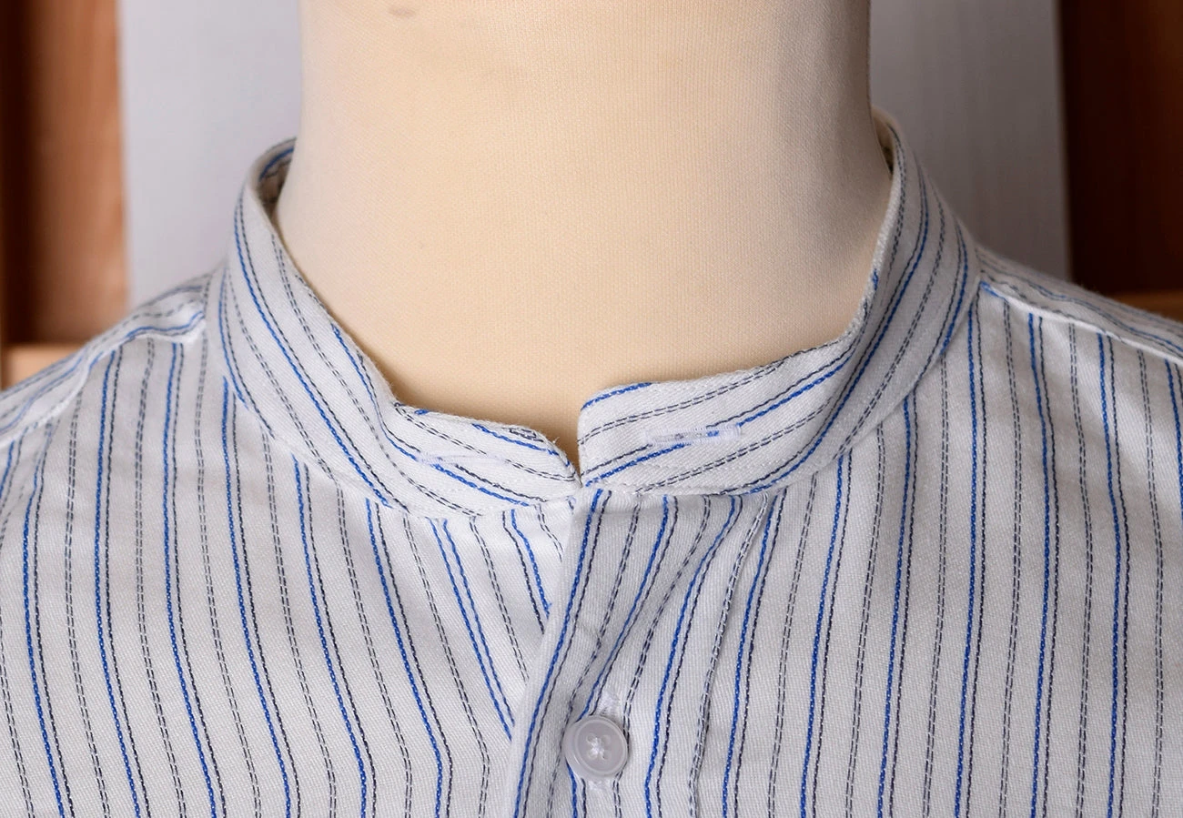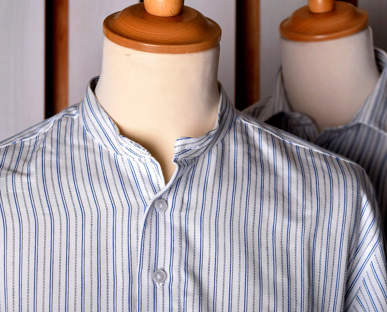 These shirt are neckband or collarless and have the appropriate buttonholes for separate collars.