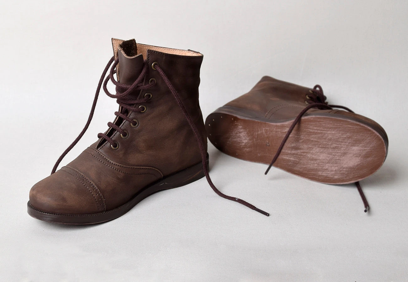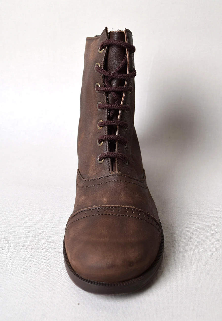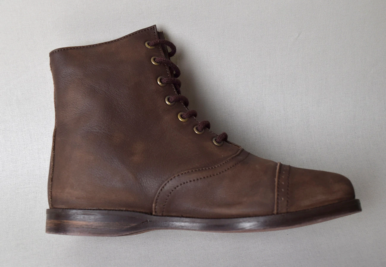 These brown boots are the perfect footwear for Victorian urchins. We had them copied from an original pair and the factory have even reproduced the scuffing so they can go straight on without the need for further breaking down.