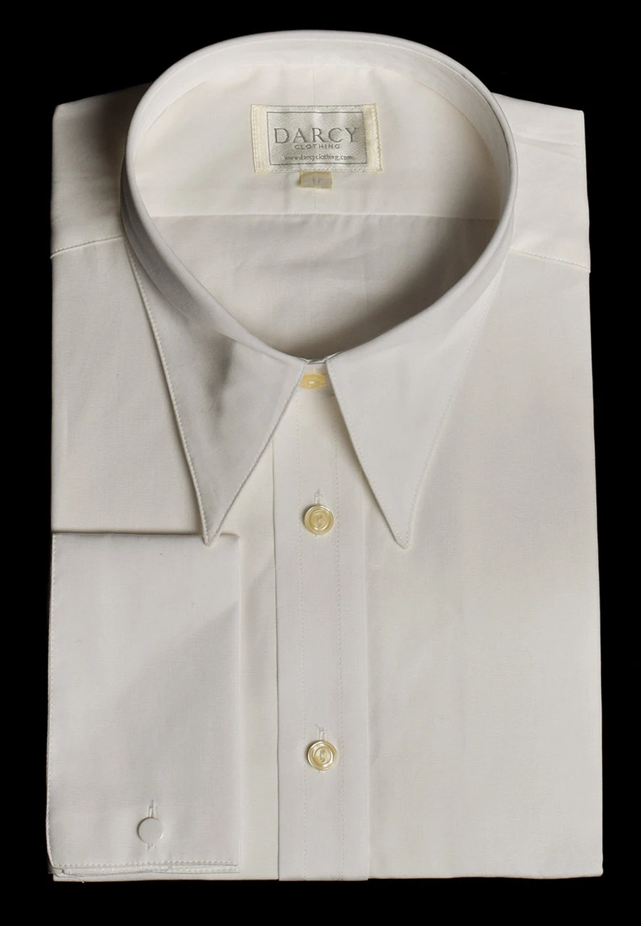 The collar shape is absolutely typical of the period and the collars themselves are made up with a deliberately soft, non fused interfacing which gives an authentically gentle look but they can take separate collar stiffeners. The collar itself is approximately 3in long at the front point.