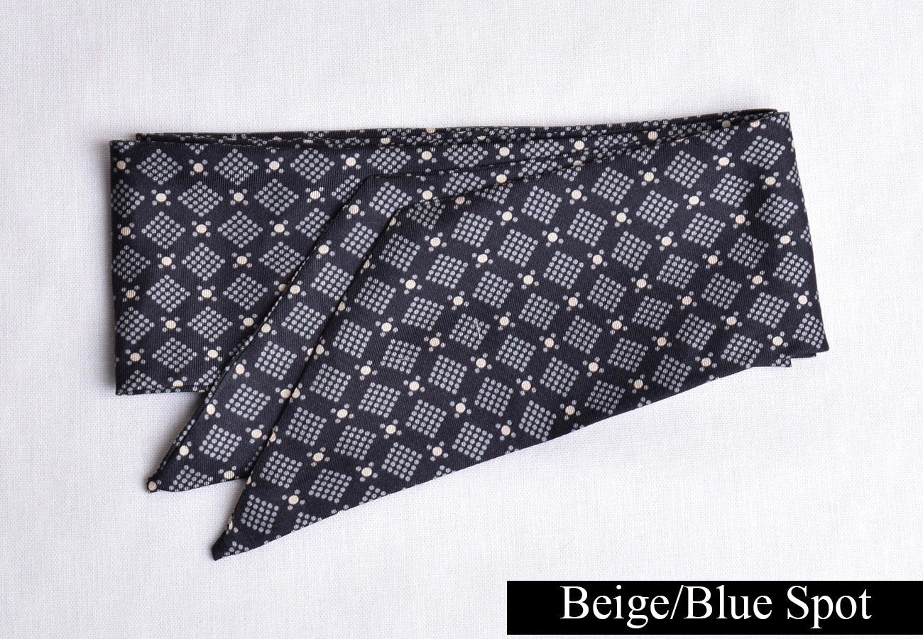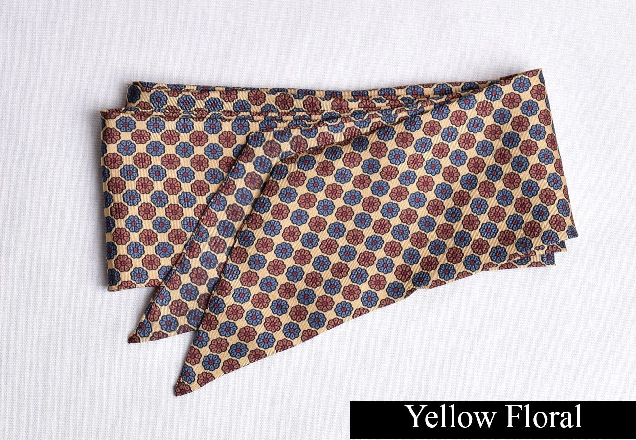 They are easily formed by winding two or three times around the neck and tying in a bow at the front. Variations can be made in the knot to create individual styles including a more modern four in hand tie for an informal look.