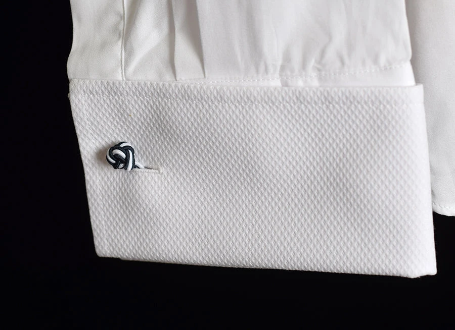 Marcella front evening shirts always look smart but these are not starched so easier to wear for less formal occasions. These shirts come in two collar shapes, wing and classic turndown. The cuffs are double (french) and close with cuff links which are not provided.