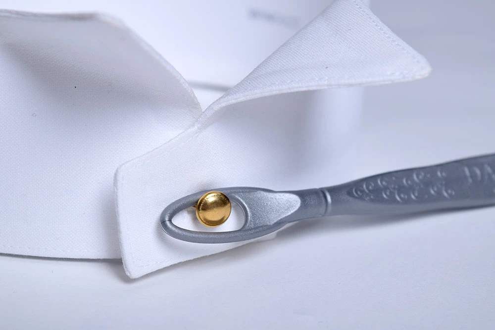 Anyone who wears stiff collars will be familiar with just how fiddly they can be to attach. Pushing or pulling the Collar Studs through all the buttonholes is an acquired art so we are delighted to be able to offer you this useful aid.