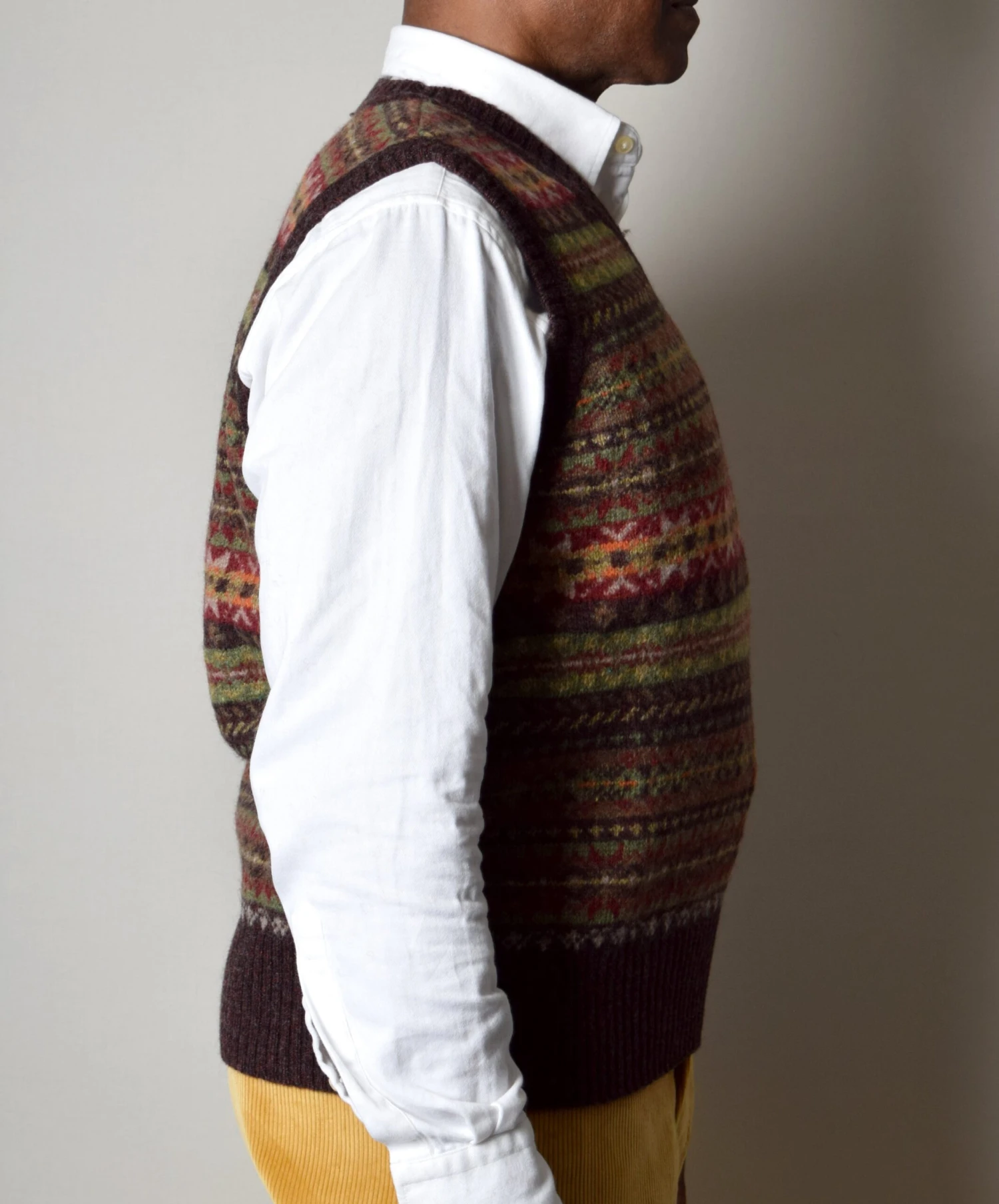 The traditional Fair Isle Slipovers are made from wonderfully cosy Shetland wool. These come from a new manufacturer for us and we are thrilled with the quality which is excellent!