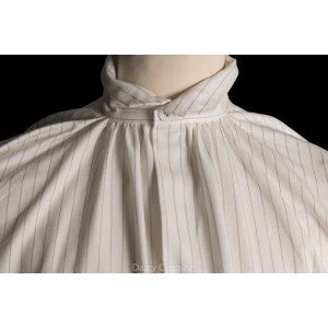 They had a plain turned-down collar and were buttoned at the neck, and the centre opening extended a long way down the front. They usually had slits up the side, often reinforced with gussets, to facilitate ease of movement. They were made of cotton, lawn or linen.