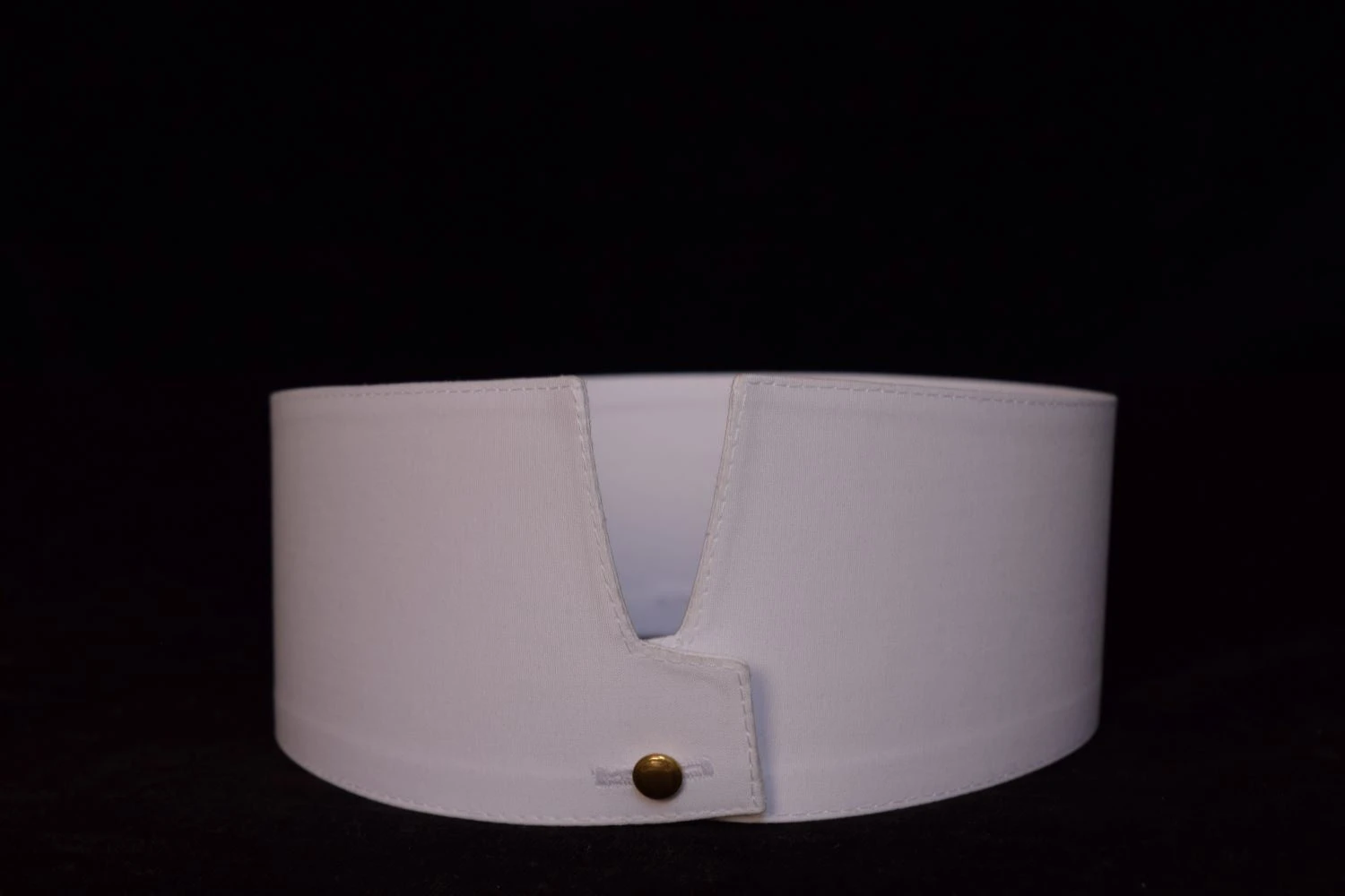 This collar gradually heightens from 5.5cm tall at the nape to 7.5cm tall under the chin.