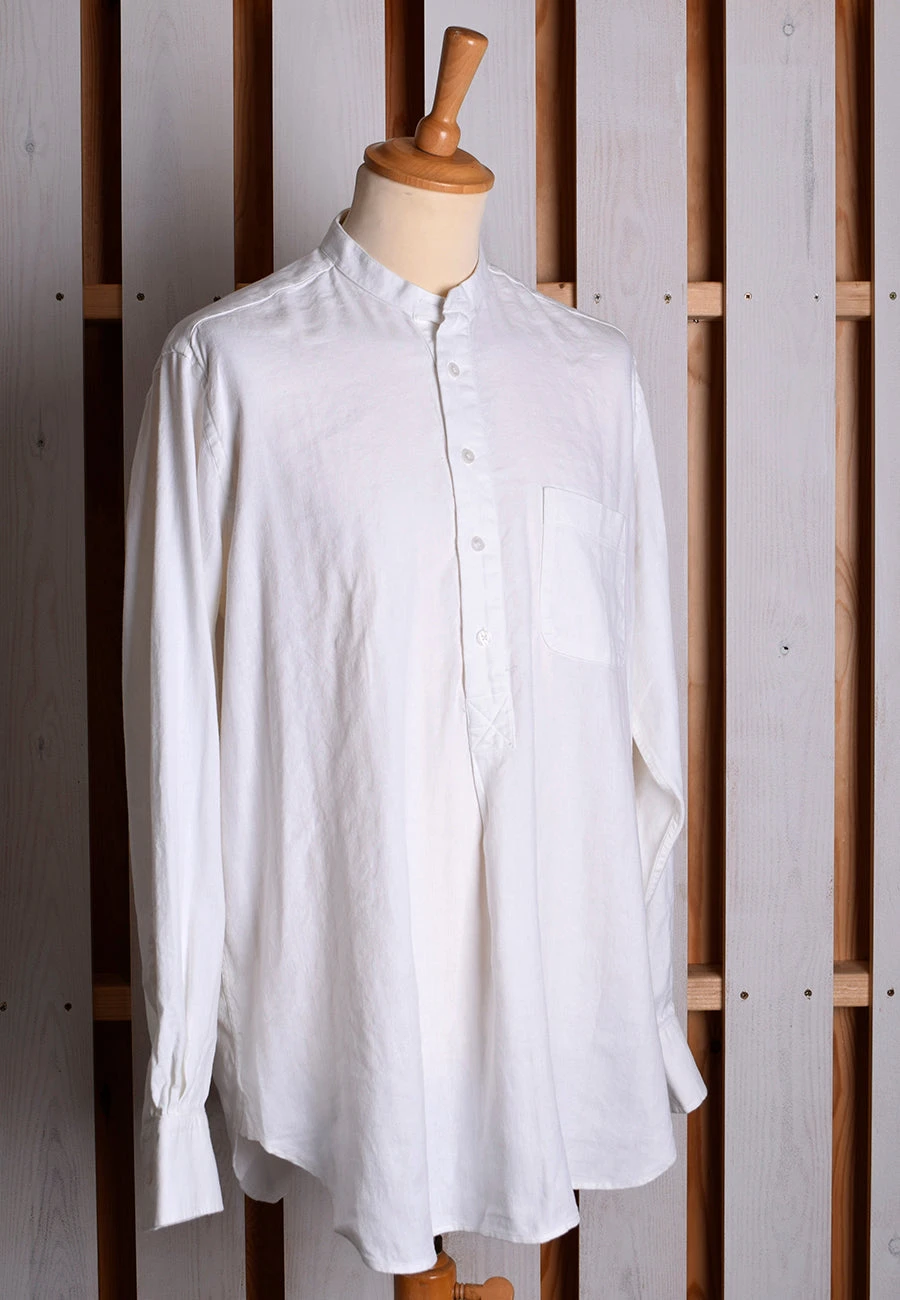Made to authentic patterns. They do not button right through but are a half placket front opening which means they pull on over the head.