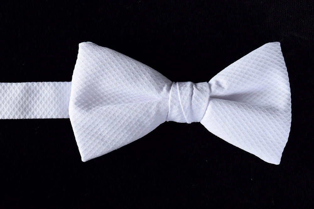 These white marcella or pique bow ties are worn at the most formal occasions, commonly know as White Tie events (for obvious reasons)