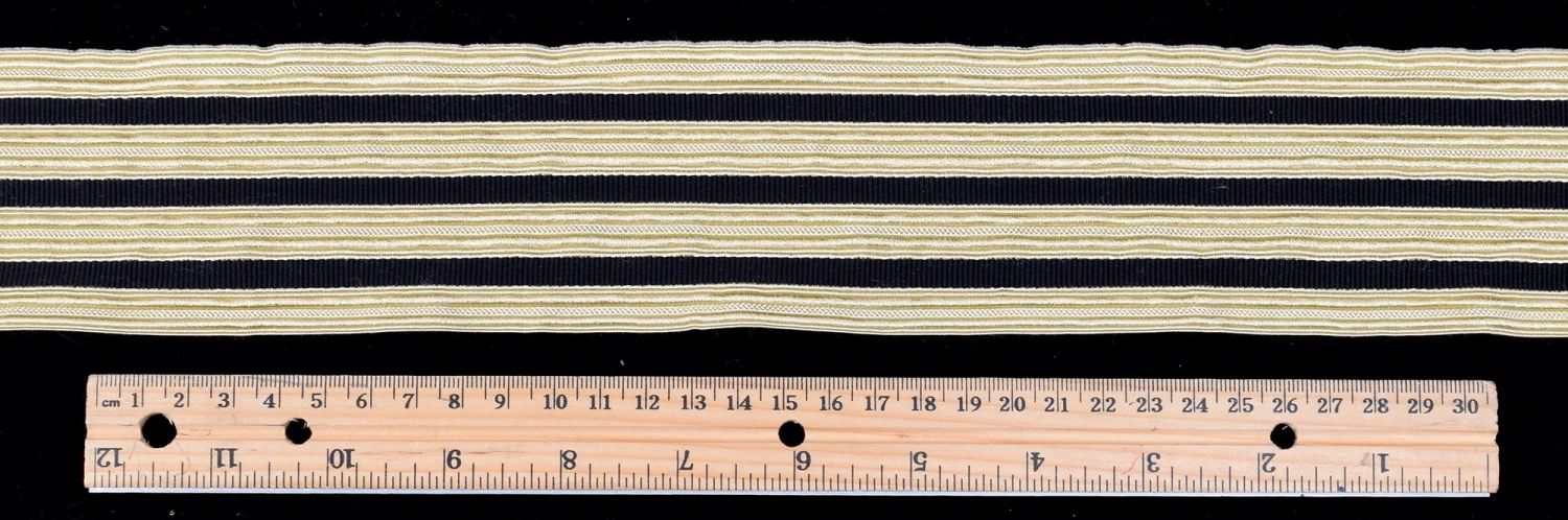 This braid is a soft pale gold colourway with three black stripes.